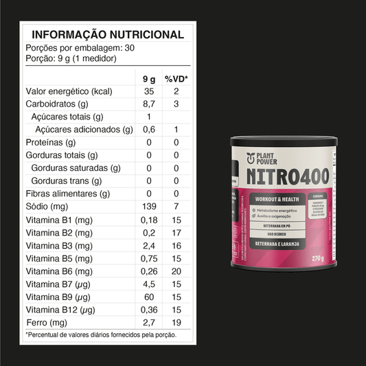 NITRO 400 PLANT POWER BETERRABA E LARANJA 270G
